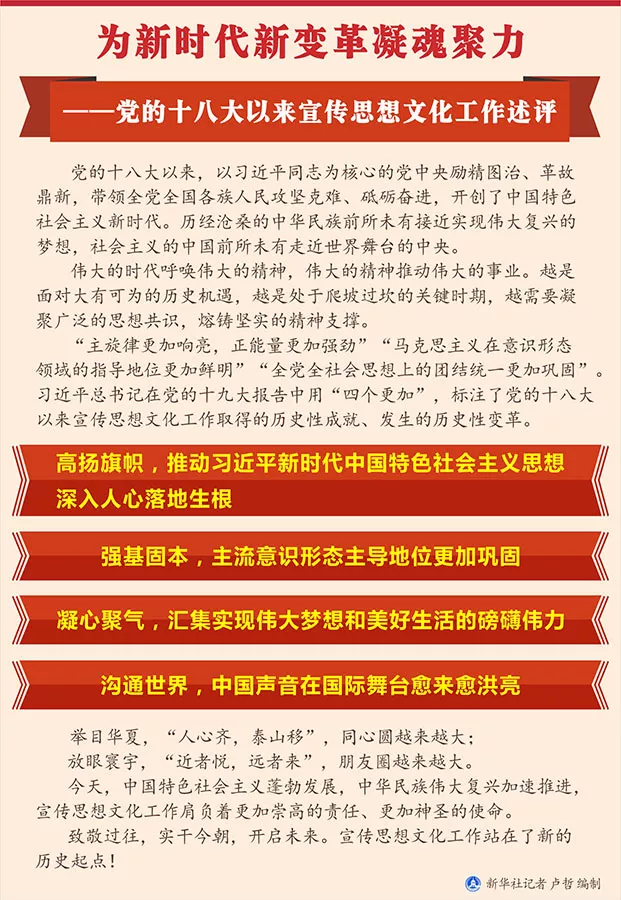 為新時代新變革凝魂聚力 ── 黨的十八大以來宣傳思想文化工作述評