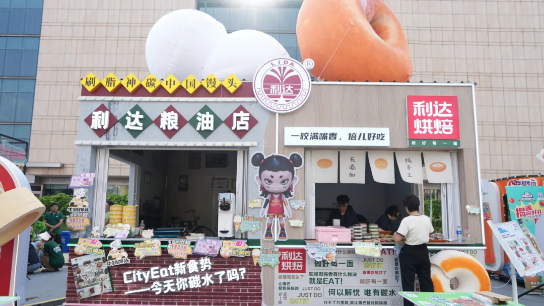 展區(qū)主要展示利達(dá)主食與利達(dá)烘焙兩個系列產(chǎn)品,結(jié)合年輕主題,搭建了以“饅頭-中國刷脂神器”為主題的互動打卡點,設(shè)立打卡贈送“漆畫扇”活動,更好地向年輕群體宣傳了利達(dá)品牌,打破消費者對利達(dá)的固有認(rèn)知,和年輕的消費群體展開友好的交流,為消費者提供多“young”性的優(yōu)質(zhì)碳水選擇。此外,結(jié)合夜市消費場景,新研發(fā)的利達(dá)花樣主食土豆、紫薯、香煎肉花卷、利達(dá)鍋巴菜貝果等,一經(jīng)推出,立即成為市集的網(wǎng)紅產(chǎn)品,深受消費者喜愛。