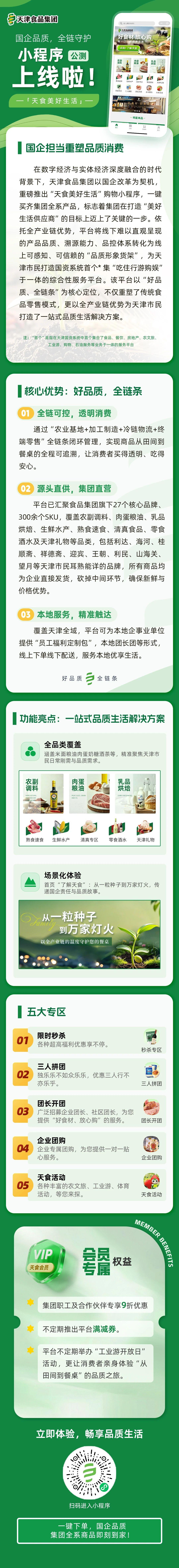 國(guó)企品質(zhì) 全鏈?zhǔn)刈o(hù)|天津食品集團(tuán)「天食美好生活」小程序公測(cè)上線啦!
